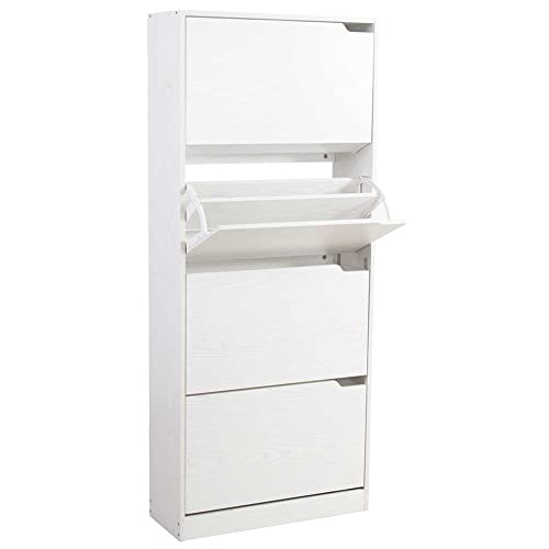 BAKAJI Meuble à chaussures en bois MDF avec 4 portes porte-chaussures à rabat, poignées rétractables, double profondeur, dimensions compactes, slim 63 x 24 x 150 cm, entrée maison (blanc frêné)