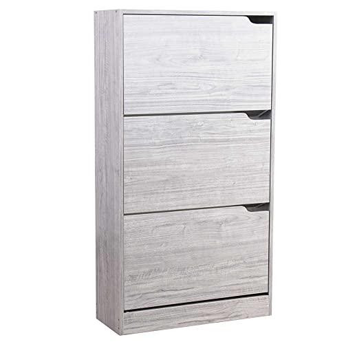 BAKAJI Meuble à chaussures en bois MDF avec 3 portes porte-chaussures à rabat, poignées escamotables, double profondeur, dimensions compactes, 63 x 24 x 115 cm, gain de place, entrée maison (gris)
