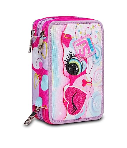 SJ GANG, Trousse d'école 3 Zip HEART LOLLY, Rose - Équipé de crayons, feutres et plus, porte-stylo enfant, mousseline de, Taglia unica, école