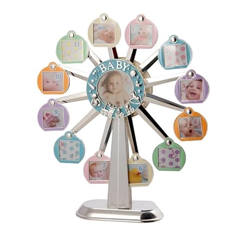 DRW Porte-photo enfant roue bleue en métal avec mouvement et musique pour 12 photos 27 x 32 cm