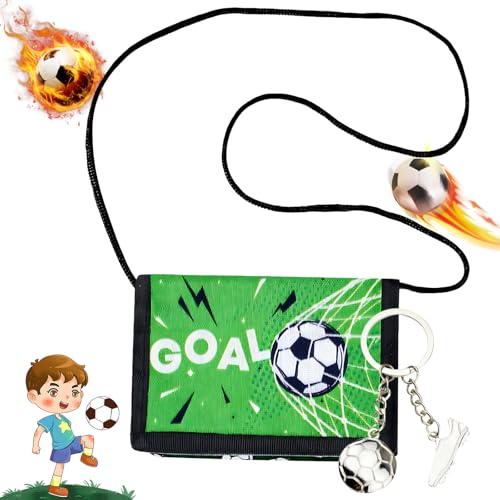 Gloryit Porte Monnaie Enfant,Portefeuille pour Enfant garçon- Motif Football,Porte-clés de Football en métal,Fermeture Velcro,Porte-Monnaie pour Enfants, pour Adolescents, garçons et Filles