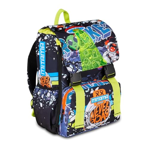 Mitama Sac à Dos Scolaire Triple Compartiment Disque Espace, Noir, Poche Porte-Bouteille, Enfant, école Primaire, Extensible