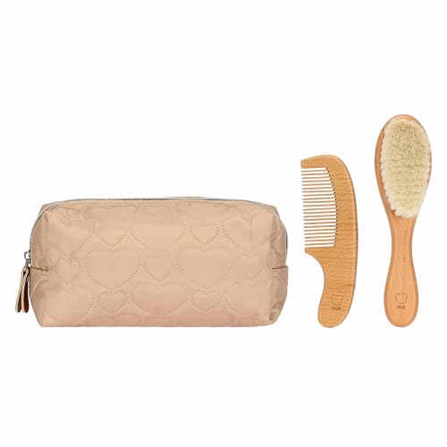THUN - Trousse porte-accessoires enfant - Trousse : extérieur 100% polyester, intérieur : 100% polyester. Brosse : bois de hêtre et poils de chèvre - Collection Baby Dolce Ferme - 20 x 8 x 10 cm