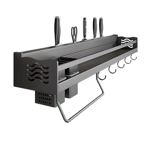 lesulety Etagere A Epices Murale Cuisine Rangement Epices Cuisine Porte Epices Mural Range Epice Etagere Cuisine Sans Percage En Aluminium Avec Porte-Couteau, Crochet,70CM