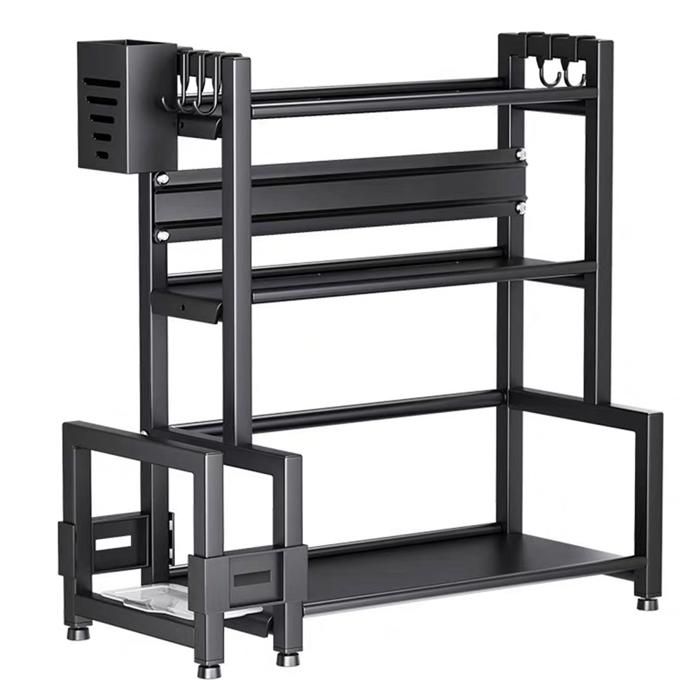 Étagère à épices multifonctionnelle à 3 niveaux - ERROLVES - Noir - Porte Épice de Rangement pour bouteilles - 48*21*49 CM