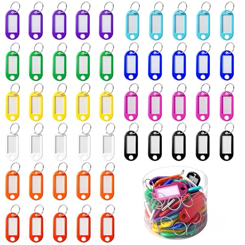 50 Pièces Porte Clés en Plastique, Etiquette Porte Clef étiquettes en PVC avec Anneaux Plastique Porte Clés Inscriptibles Pour Bagage, Animaux de Compagnie, Clés USB, 10 Couleurs