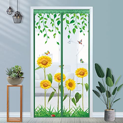 JYHCD Moustiquaire Porte Fenetre Magnétique Tournesol,Rideau Anti Moustique avec Aimants,Rideau Moustiquaire Porte-Fermeture Automatique - Aucun Perçage n'est Nécessaire,80x205cm(W x H)