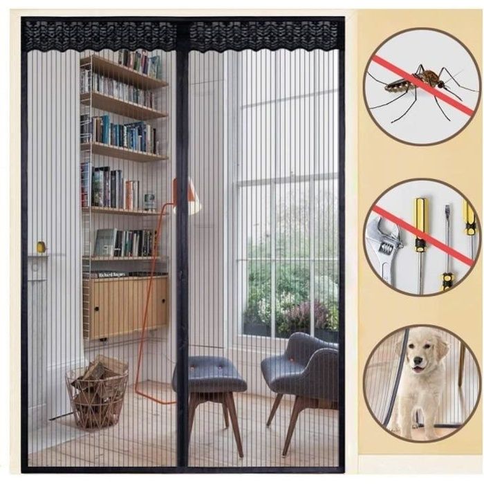 GUOGAI Moustiquaire AimantéE Porte Fenetre, 100x215cm(39x85inch) Rideau Moustiquaire Moustiquaire de Porte Rideau Anti Mouche pour Couloirs, Portes, Noir A