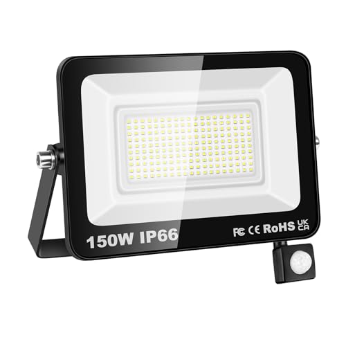 Willpower Éclairage LED de sécurité d'extérieur avec détecteur de mouvement 150 W LED, 15000 lm, IP66, étanche, lumière du jour, blanc 6500 K, pour jardin, patio, garage, porte, cour, pelouse