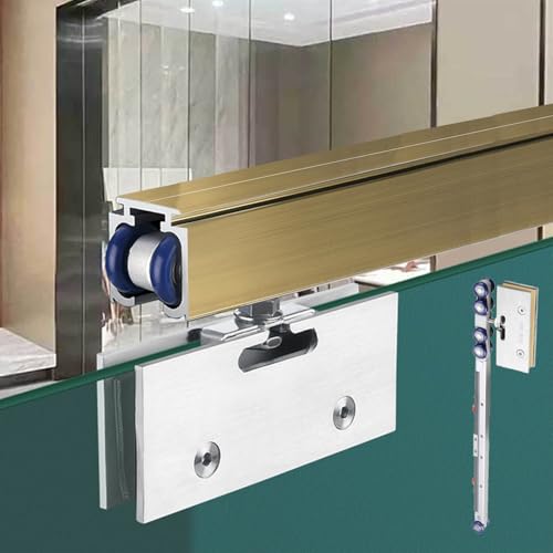 Rail de Verre Coulissant sans Cadre avec Fermeture Douce, kit de quincaillerie pour Porte de Douche de Grange, Rail de Porte coulissante intérieure pour Verre de 0,31 à 0,47", Rail Coulissant