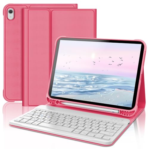 FOGARI Clavier pour iPad 10/11ème Génération 2022/2025, Clavier AZERTY sans Fil Bluetooth, Étui avec Porte-Crayon pour iPad 10ème Gén/A16 (10.9''/11‘’) - Rouge