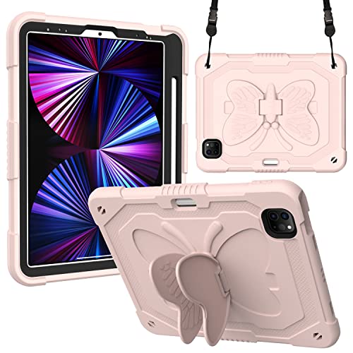 iPad Pro 11 Pouces 2021/2020/2018 3a/2a/1a Génération Étui de Protection résistant résistant aux Chocs avec bandoulière et Support Papillon et Porte-Crayons pour iPad Pro 11