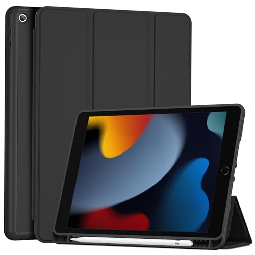 ProCase Coque avec Porte-Stylet pour iPad 10.2" iPad 9/8/7ème Génération 2021/2020/2019, Nouvel Étui Amélioré, Housse de Protection Anti-Chute -Noir