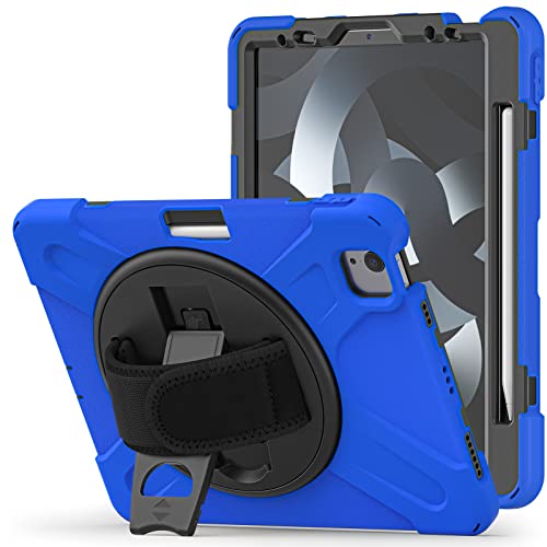 ZiHang Coque Compatible avec iPad Pro 10.5, 4 Couches de Protection, Incarné d'un Support Rotatif à 360 degrés, Dragonne et Bandoulière, avec Porte-Stylo pour iPad Pro 10.5 (Bleu)