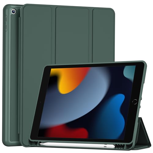 ProCase Coque avec Porte-Stylet pour iPad 10.2" iPad 9/8/7ème Génération 2021/2020/2019, Nouvel Étui Amélioré, Housse de Protection Anti-Chute -Vert Nuit