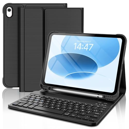 FOGARI Clavier pour iPad 10/11ème Génération 2022/2025, Clavier AZERTY sans Fil Bluetooth, Étui avec Porte-Crayon pour iPad 10ème Gén/A16 (10.9"/11") - Noir