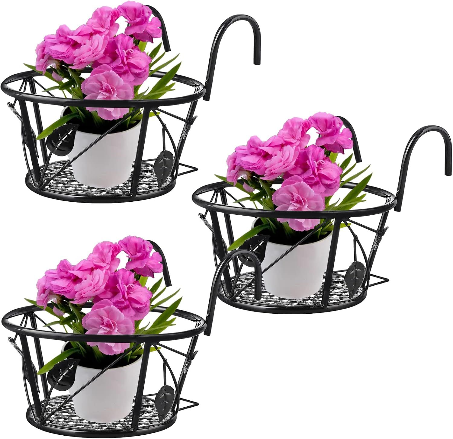 Ledeak 3 pièces Jardinière en Métal pour Balustrade, Fleurs Rond Crochet Suspendus Garde-Corps Jardinières Porte-Pots de Fleurs Supports, Pots de Fleurs Suspendus pour Jardin Intérieur Extérieur
