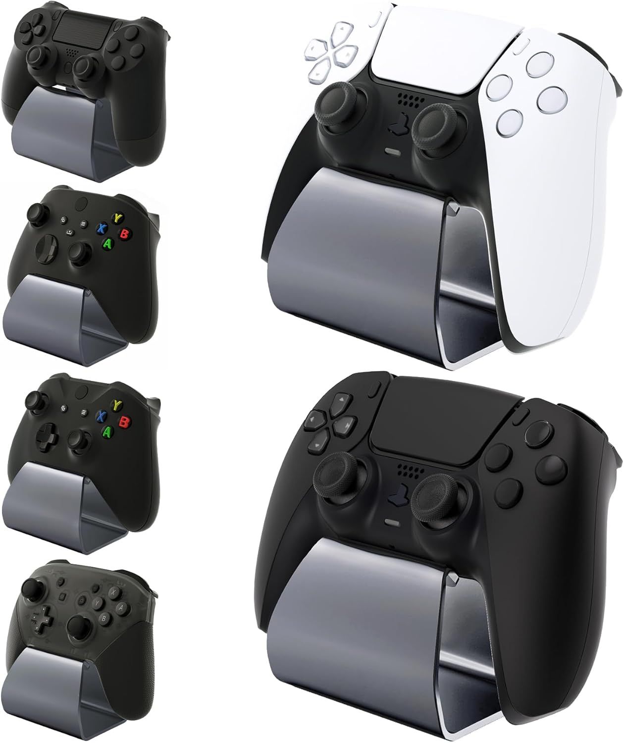 Support pour ps5,Porte Manette pour ps4 Socle pour Xbox Series/One X S,Stand-AL Controller Holder Métal pour Switch Pro avec Caoutchouc Antidérapant-Gris(2PCS)
