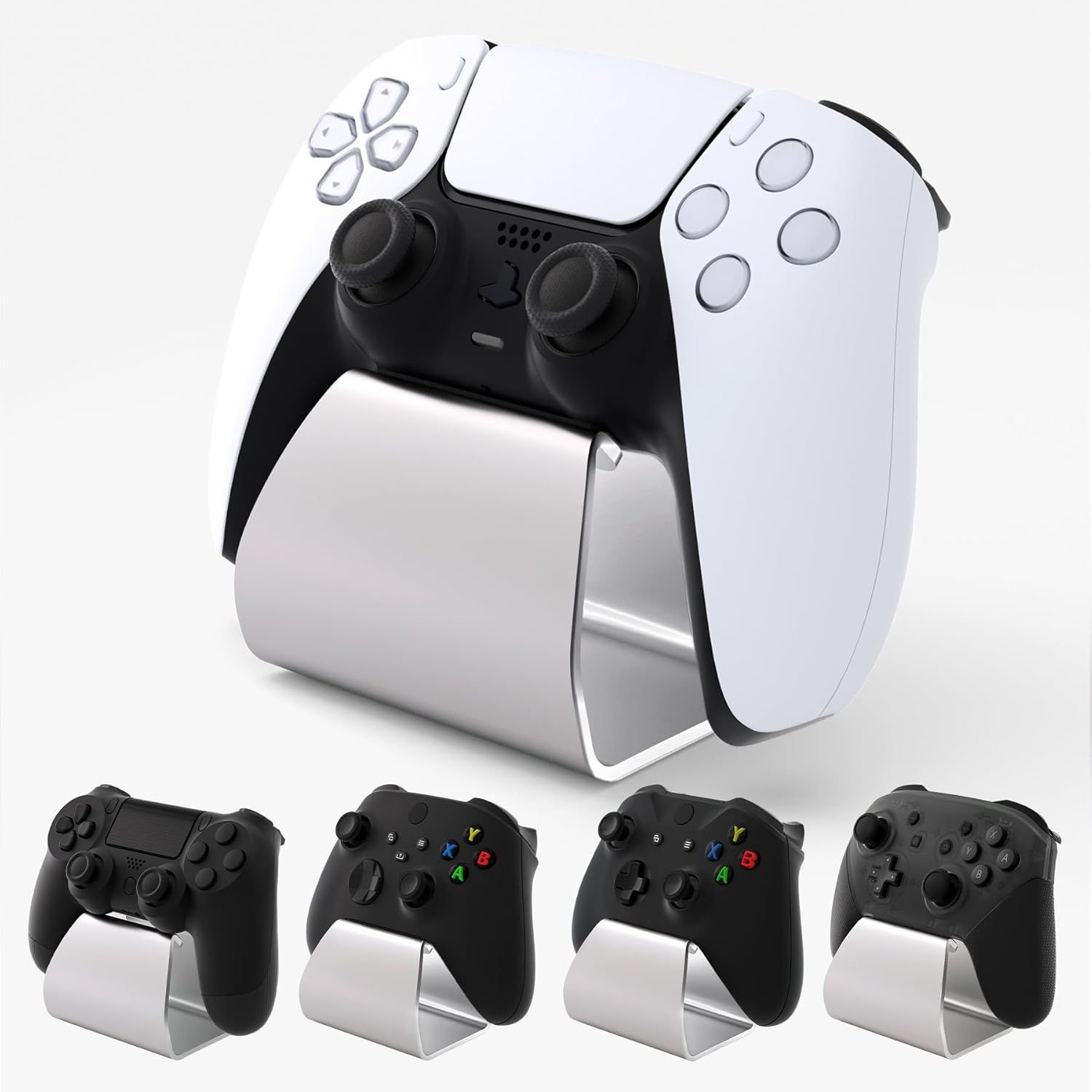Support pour ps5 Manette Porte pour ps4 Socle Controller, Stand-AL Holder Métal pour Xbox Series X S/Xbox One pour Switch Pro avec Coussinets Antidérapant-Argent