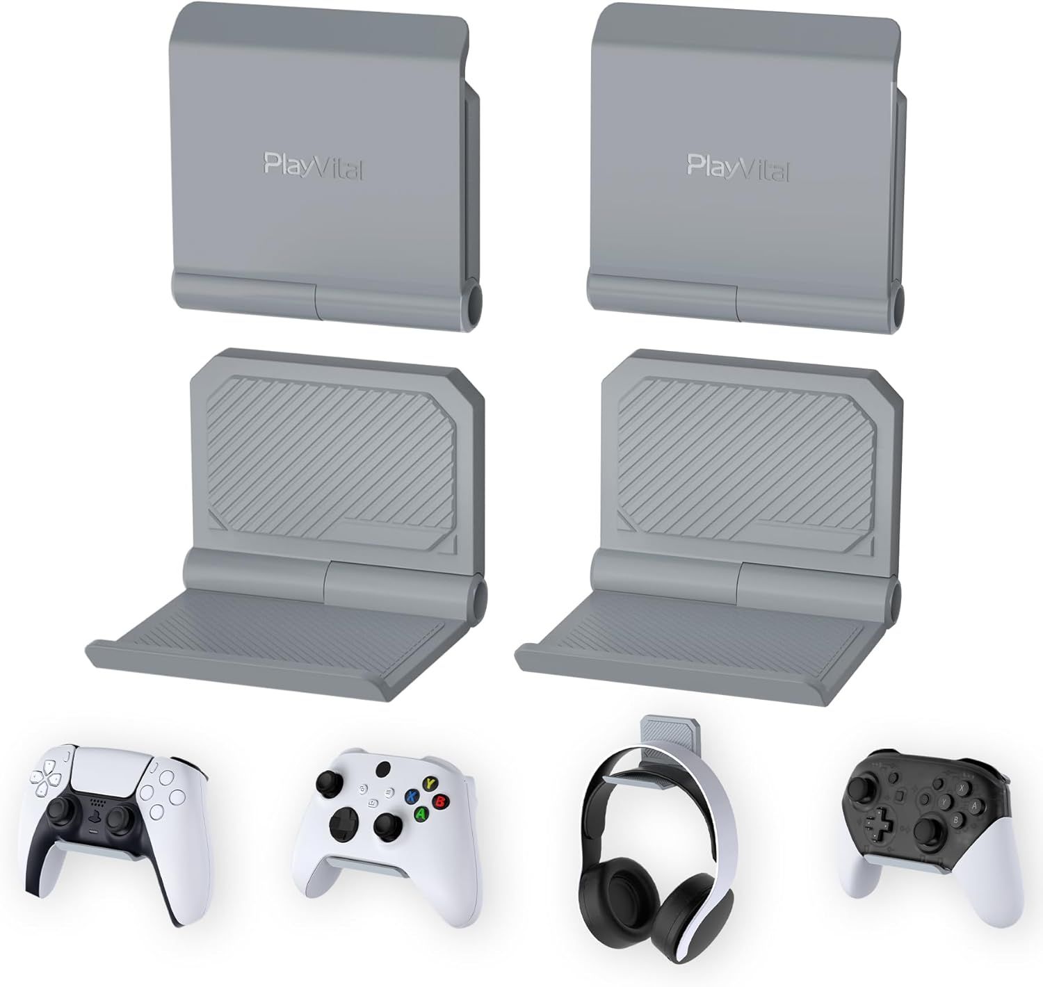 playvital Support pour ps5 Manette/Console/Casque Mural,Porte pour ps4 Controller Stand Holder pour Nintendo Switch Pro pour Xbox Wireless Headset,Fold Socle Base 4 PCS-Gris