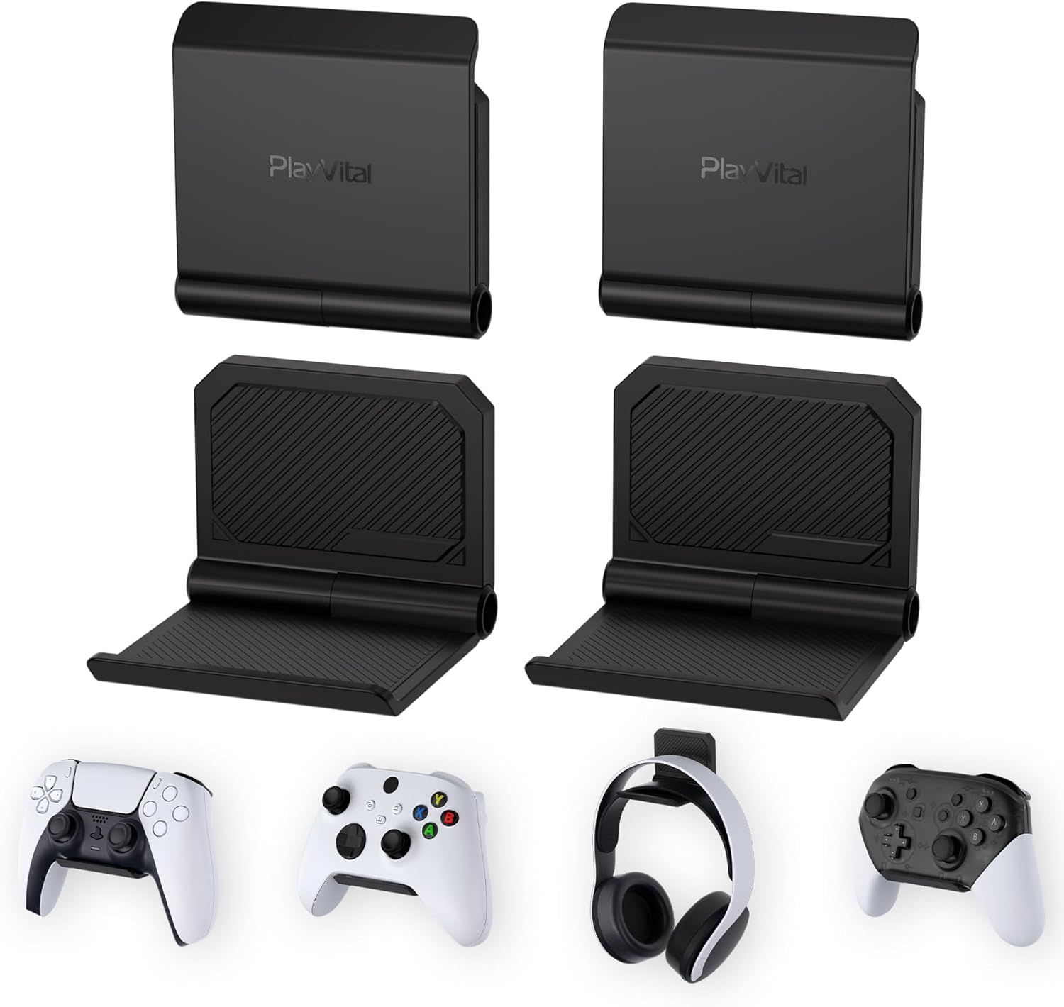 playvital Support pour ps5 Manette/Console/Casque Mural,Porte pour ps4 Controller Stand Holder pour Nintendo Switch Pro pour Xbox Wireless Headset,Fold Socle Base 4 PCS-Noir