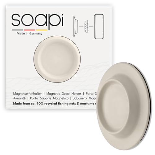 Soapi® Blanc Crème - Porte-Savon Aimanté Ecologique | Fixation Puissante sans Perçage ni Ventouse | Fabriqué en Allemagne | Fait à partir de Déchets Maritimes et de Filets de Pêche Recyclés
