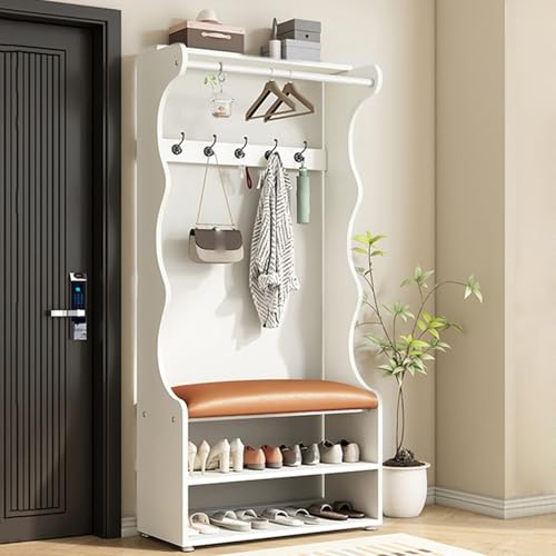 FGXHHS Banc d'entrée élégant avec Porte-Manteau et Rangement à Chaussures, Design autoportant, 2 étagères, 9 Crochets, Coussin en Velours Doux Blanc, 80 cm - Idéal pour la décoration inté