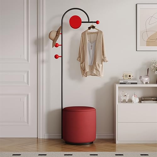 FGXHHS Ensemble Porte-Manteau et Banc à Chaussures, entrée avec Support latéral, Banc rembourré de Bout de lit, pour entrée, Couloir, Chambre, supporte jusqu'à 136 kg (Rouge)