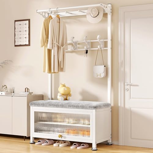 FGXHHS Ensemble Porte-Manteau et Banc à Chaussures, entrée avec Support latéral, Banc rembourré de Bout de lit, pour entrée, Couloir, Chambre, supporte jusqu'à 136 kg (Blanc)