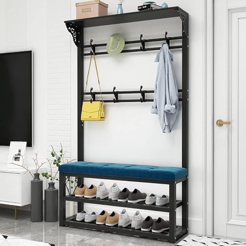 FGXHHS Banc d'entrée 3 en 1 avec Porte-Manteau et Rangement à Chaussures. Coussin en Velours. Montage Facile. Élégant Porte-Manteau Bleu 99 cm (39 Pouces). Idéal pour Ranger Manteaux et c