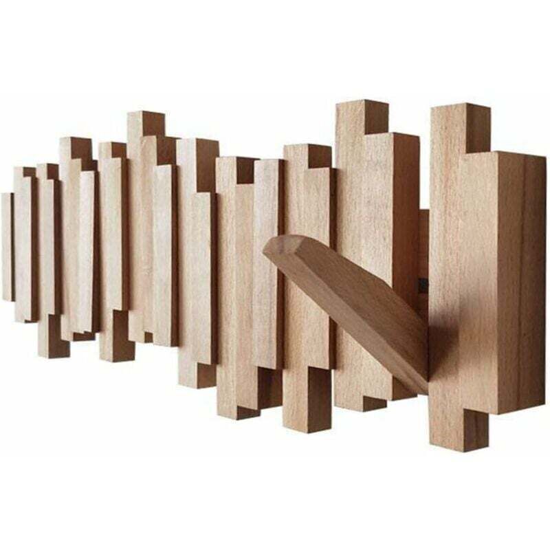 Pliable Patères en Bois Naturel, Porte-Manteau Mural avec 5 Crochets Étagère Murale Range-courrier Auto-adhésif Accroche clé Organiseur Muraux en