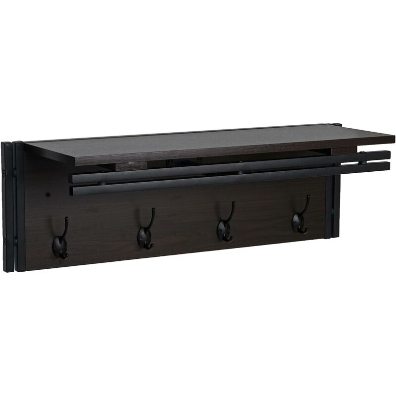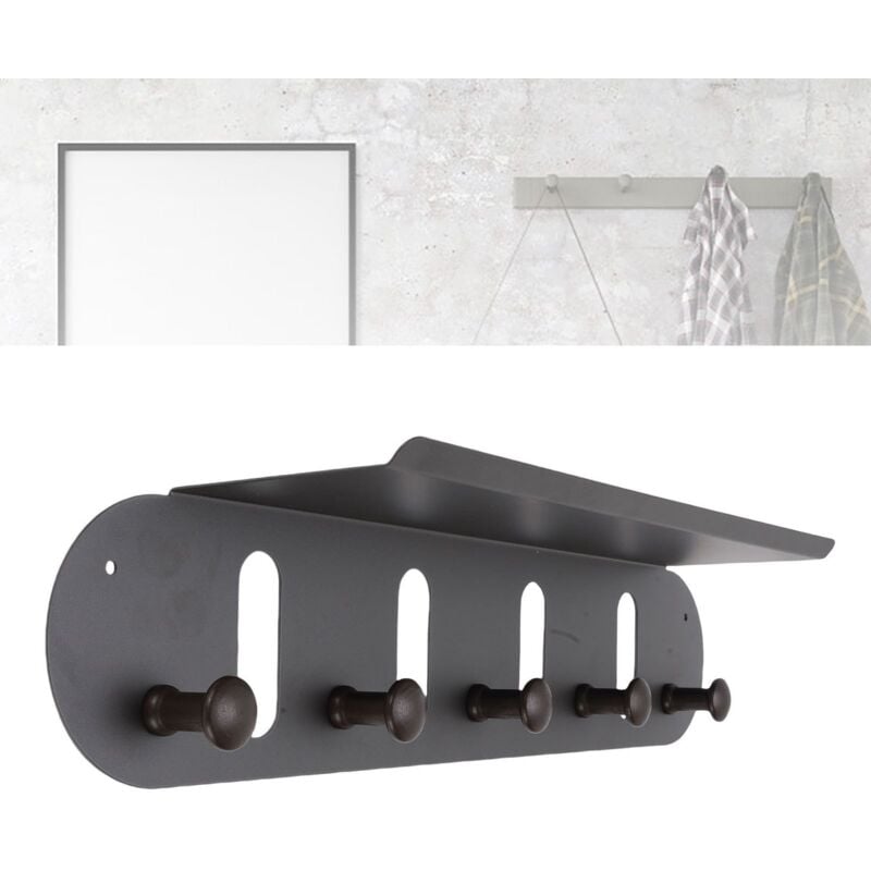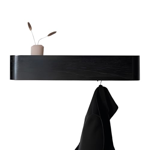 Wintem - Porte-manteau mural peu encombrant en chêne noir avec 5 crochets cachés pour entrée moderne, usage quotidien pour manteaux et sacs, design minimal avec étagère intégrée