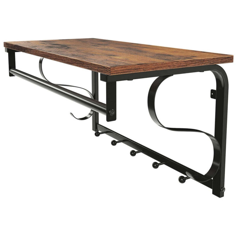 Porte-manteau Mural Étagère Suspendue avec 10 Crochets Amovibles sur 2 Rangées Barre de Suspension Marron Rustique et Noir