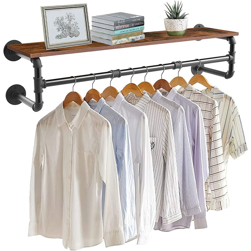 Unho - Penderie Murale Vêtement Suspendue Portant à Vêtement Mural Industriel Porte Manteau Tringle Vêtement Avec Étagère Amovible - 104x22x25cm Noir
