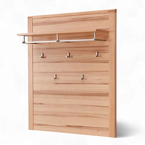 Stella Trading Nature ONE - Panneau porte-manteau en cœur de hêtre - En partie massif certifié FSC - Étagère moderne avec crochet mural - 90 x 110 x 29 cm (l x H x P)