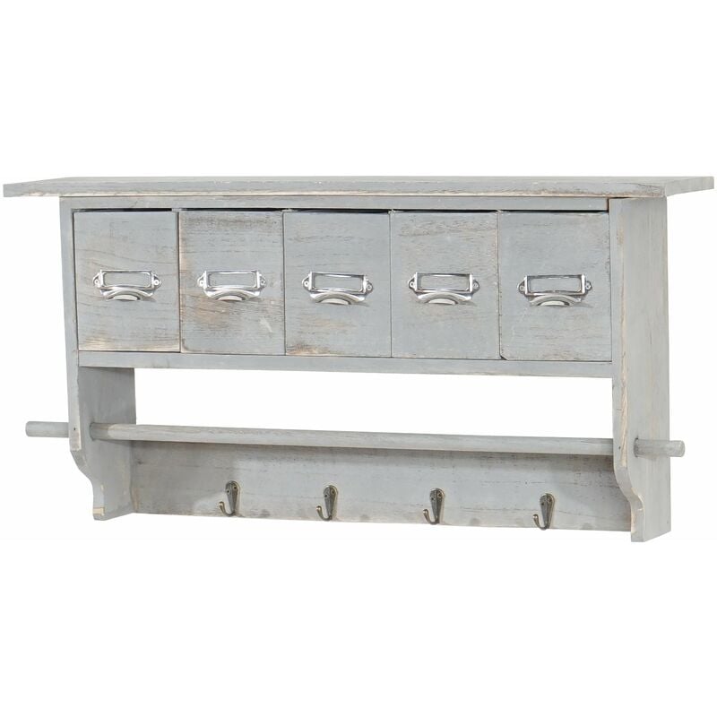 Porte manteau mural étagère murale avec 4 crochets tringle vintage avec 5 tiroirs 32x65x13cm gris 040000965