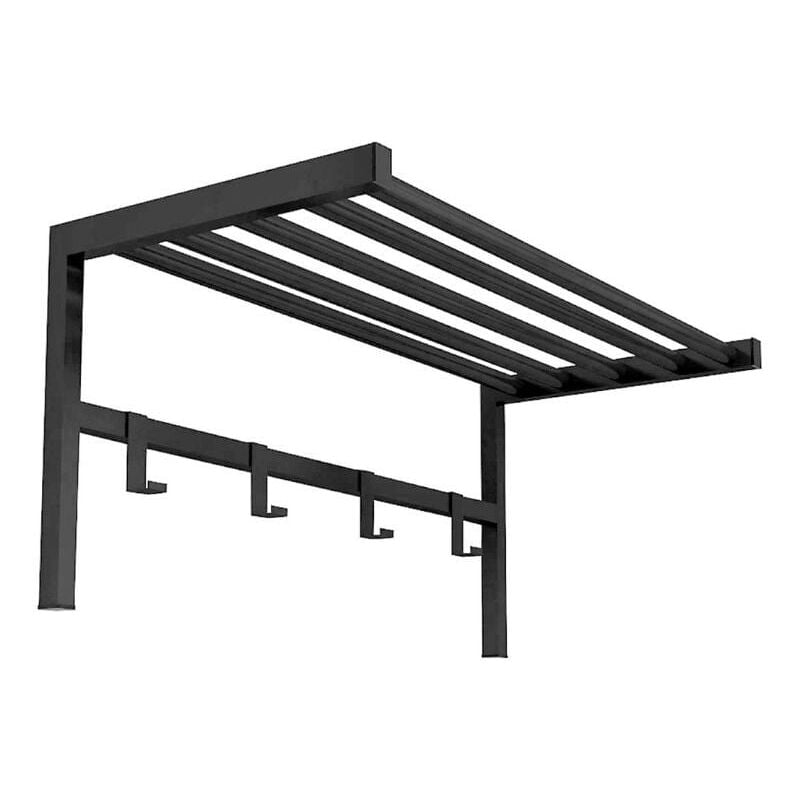 Porte-manteau mural avec 4 crochets et étagère en métal noir 69 x 33 x 34 cm