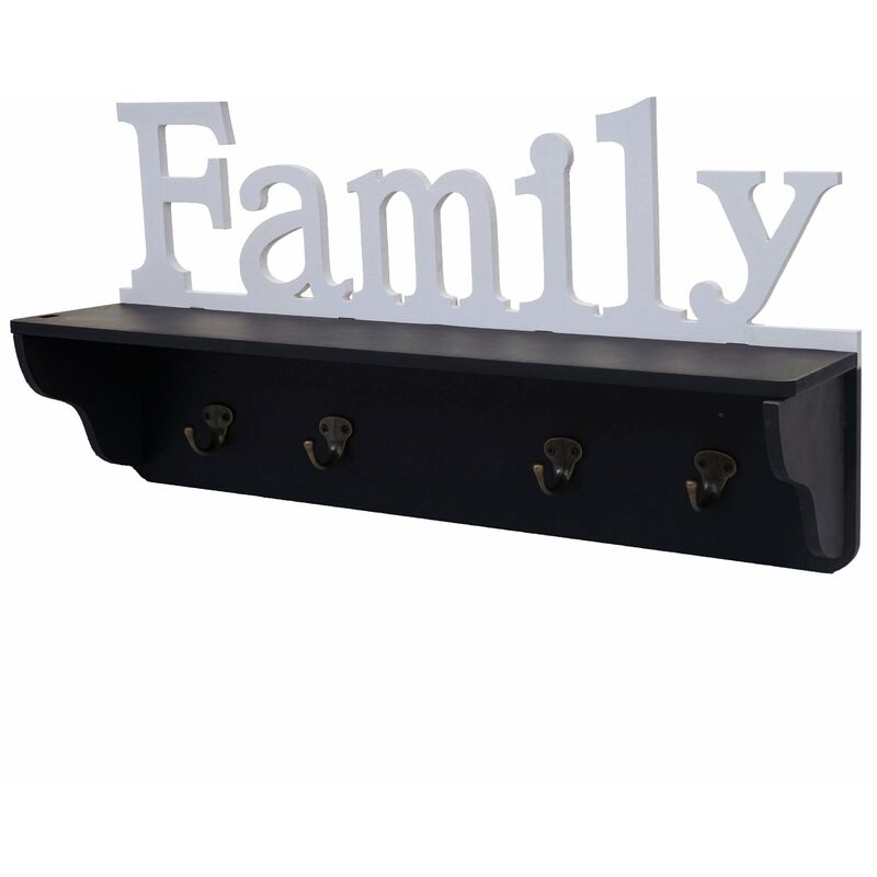 Porte-manteau mural Famille étagère avec 4 crochets 30x60x13cm en bois noir / blanc 040001016