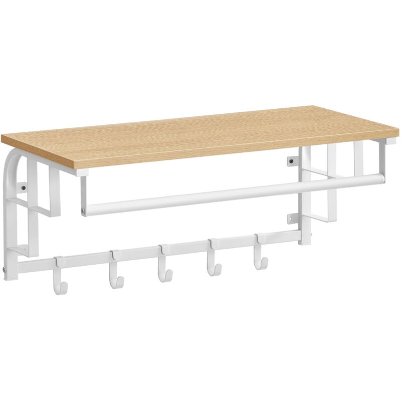 Vasagle - Porte-manteau Mural avec Étagère de Rangement, Étagère Murale avec 5 Crochets Amovibles, Étagère Suspendue avec Tringle, pour Entrée,