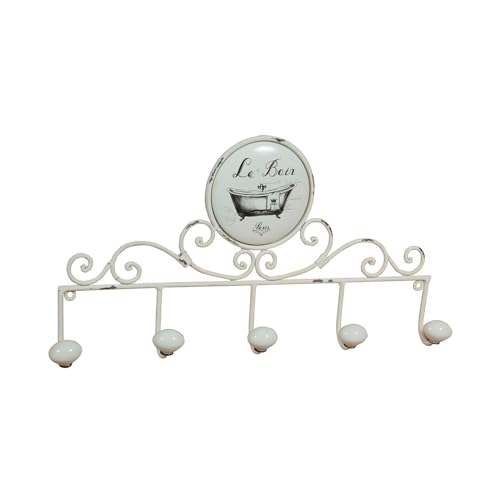 Biscottini Porte-manteau mural 49 x 27 x 7 cm - Porte-manteau mural en fer - 5 crochets porte-manteau shabby chic - Porte-manteau d'entrée
