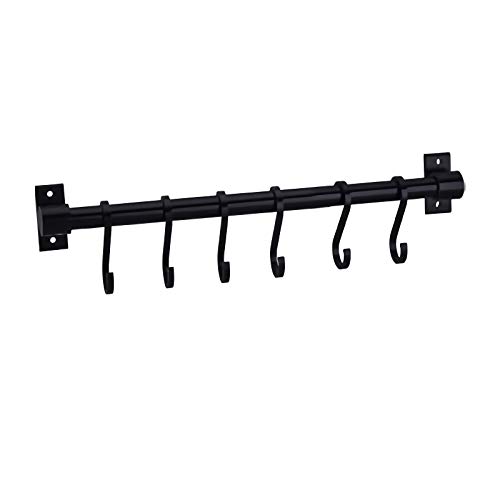 WONMILLE Porte-ustensiles de cuisine Gourmet avec 6 crochets, rail mural en fer forgé avec crochets en S amovibles, 40,6 cm (noir, 6 crochets)