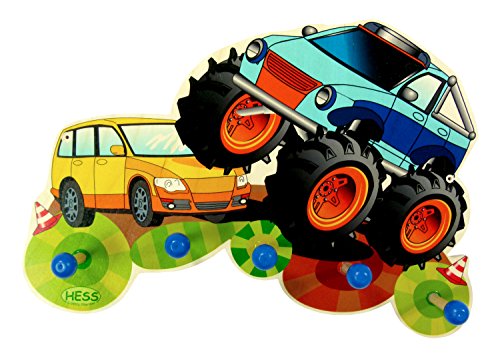 Hess Holzspielzeug 30297 - Porte-manteau en bois - Série Monster truck - Avec 5 crochets - Pour enfants - Dimensions : 37 x 25 x 6,5 cm - Fait à la main - Pour une chambre d'enfant et un couloir