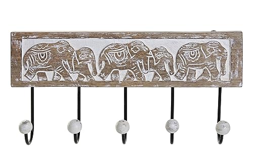 DRW Porte-manteau mural éléphants bois manche 38X6X18 cm