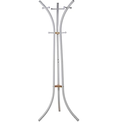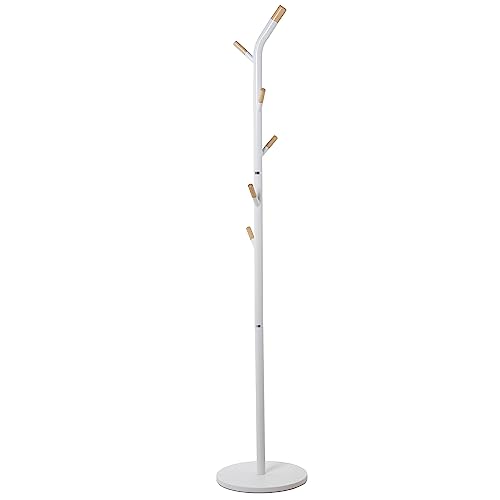 Compactor Porte-Manteau en Bois, 6 Crochets Inclus, métal et Bois avec Base en marbre, 37 x 37 x 171cm, Blanc/Brun, RAN10970