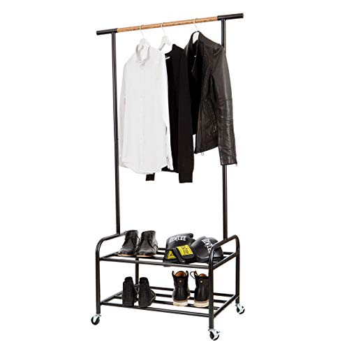 Love IT Store IT Loft Porte-Manteau sur roulettes - avec 1 Tringle à vêtements et 2 étagères de Style Industriel - Stable - Noir/Aspect Bois