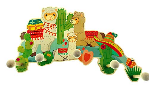 Hess Holzspielzeug 30348 Lama Porte-manteau en bois avec 5 crochets pour enfant Fait main 35 x 21 x 6,5 cm