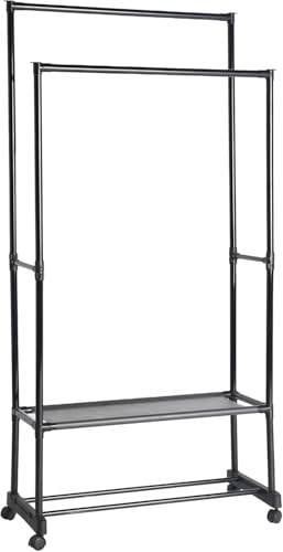 Iris Ohyama, Portant a Vetement en Métal, Penderie avec Étagère en Bois, Porte Manteau, 2 Niveaux, Noir, Solide, pour Chambre, Studio, Dressing, Vêtement & Chaussure, Entrée, Montage Facile, PI-B2