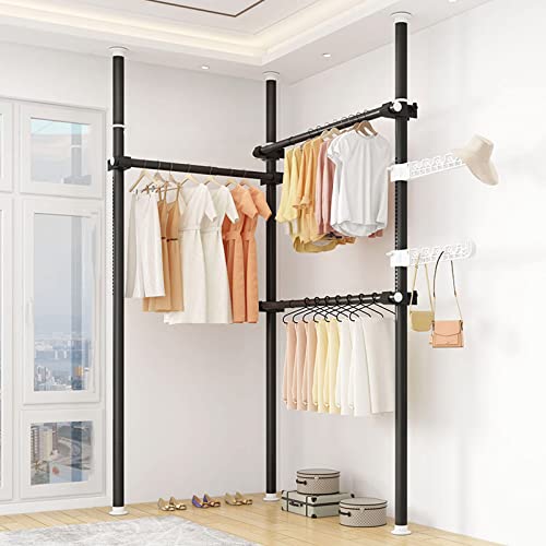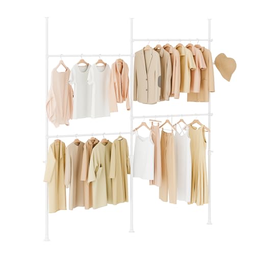 SOULONG DIY Portant à vêtements Portable et très résistant, Porte-Manteau télescopique Organisateur de penderie de penderie Mobile Tringle et Barres en Acier Inoxydable, 3 Poles 4 Bars
