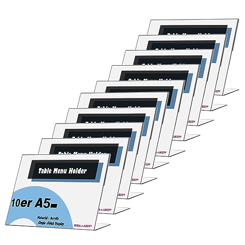 TUKA-i-AKUT 10X A5 Paysage Acrylique Porte Menu, Fermeture Magnétique, Présentoirs de Table Double Face Support Publicitaire d'affichage pour Affiches Menus Exposition Foires, TKD8241-A5-W-10x