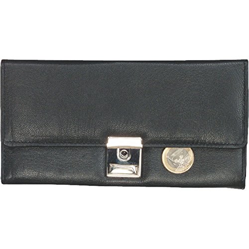 ALASSIO LIGHTPAK Alassio 42080 Porte-Monnaie en Cuir Nappa avec chaîne en métal et Mousqueton Noir 18,5 x 9,5 x 3 cm